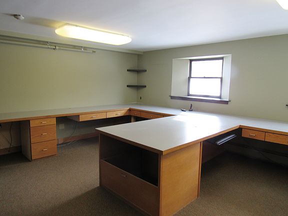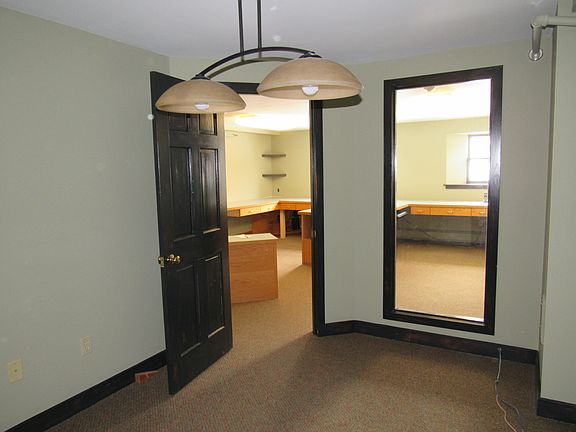 Perhaps the best opportunity for ownership of a professional office space, within Woodstock! The bright interior benefits from south facing windows and well placed lighting fixtures. The well designed built in desks are thoughtfully placed to maximize the use of space. Easily accessed from the main room is a private office, with it's own exterior entrance door. From the carpeting, to the built in fixtures, this office presents itself as "turn key." Immediate occupancy is available!