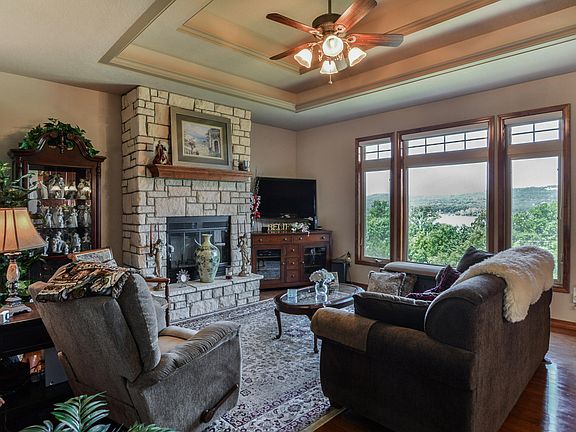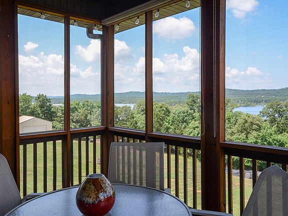 The Good Life Awaits You Here! Exceptional Table Rock Lake View home with the style, features and benefits in a great Indian Point location, just blocks to Marina. The 4BR/3BA home upgraded from flooring to ceiling design, Gourmet Kitchen, lovely Master Suite and more. Additional parking area, sidewalk and patio and other quality of life features like the covered screened room and open deck accessible from gorgeous Master Suite. The Gathering Area, wetbar, deck access along with storage and workspace in lower level is exceptional use of space. Also 2 bedrooms and bath tucked away for privacy. Space for Shop or Building.The lot goes street to street and on paved road, shared well and septic with recorded documents. . Come Let the Good Life Begin.....