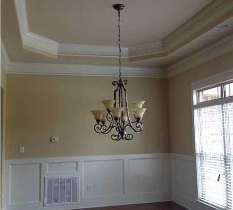 2 Car Garage,Steel & Iron front door. Granite in kitchen and baths, Tumbled Marble Back Splash in kitchen, Recessed Lighting in Kitchen,Stainless GE Profile: Gas cooktop w/decorative hood, dishwasher, oven & microwave Wall unit, Refrigerator, disposal. Washer and dryer. Full Overlay Cabinets. Hardwood, tile and Frieze carpet. Sprinkler system. Gas Fireplace. Heavy Crown molding, upgraded lighting. Cultured marble Garden tub & Separate shower, window blinds, security system.