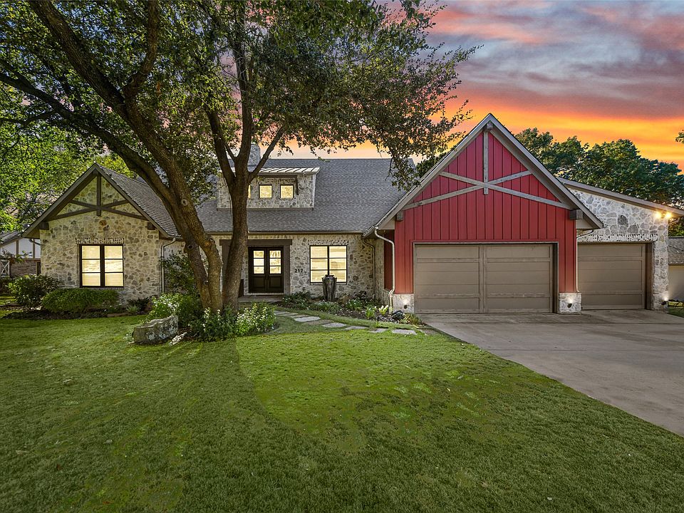HIGH-END ESTATE BUILT BY STREET CUSTOM HOMES NESTLED ON A SPRAWLING .58 ACRE CREEK LOT WITH AN INCREDIBLE BACKYARD OASIS! Exquisite design & modern luxury combine in this remarkable home boasting handscraped wood flooring, plantation shutters, wood-beamed ceilings, built-in speakers throughout the downstairs rooms, tons of windows for natural light & an efficient layout with a thoughtful design & seamless flow. The chef in your family will love the modern kitchen showcasing granite & zinc countertops, decorative backsplash, under cabinet lighting, a huge walk-in pantry, stainless steel appliances, a built-in fridge & a 48 in. JennAir range with a double oven, 6 burner gas cooktop & a griddle. Pamper yourself in the lavish primary suite graced with a cathedral ceiling, access to the pool, a freestanding tub, semi-frameless shower, separate granite vanities with a makeup area & a huge custom closet. Entertain in the downstairs game room including a sliding barn door, wet bar area, brick accent wall & French doors to the patio, or make great use of the upstairs game room & oversized secondary bedrooms. Paradise awaits you in your tiered backyard offering patio seating, grilling areas, lush landscaping, mature trees, a PebbleTec pool & spa, massive covered patio with ceiling fans, a storage building & an outdoor kitchen with a built-in gas grill & a Green Egg. Other features include a Control4 sound system & equipment, 3 car garage, cozy front porch & a recently replaced roof. Close proximity to lots of shopping, dining & DFW Airport!