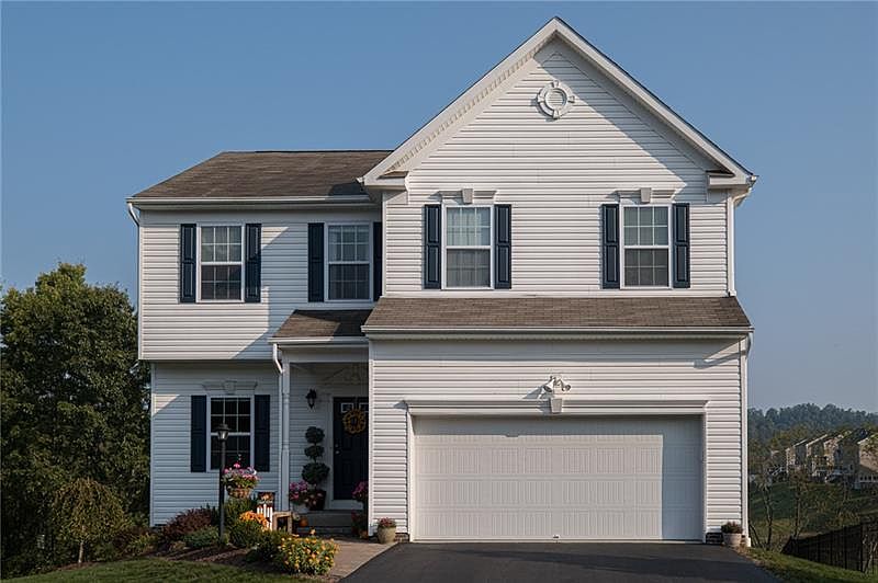 Designed with entertaining in mind, the open floor plan of this 4 bedroom, 2 and 1 half bath, 2-Story allows easy flow between rooms of the entire first floor. A wall of windows in back provides spectacular views from inside while the large composite deck and newer stamped concrete patio below offers great views from the outside. 9' ceilings & luxury vinyl flooring are found throughout the first floor. 42" wall cabinets, granite counters and island, and stainless appliances are found in the fully equipped kitchen that has an additional eat-in area. A family room fireplace, large tiled shower and separate soaking tub in the master bath, second floor laundry, and walkout basement are other features to note. This home is located at an end of a culdesac, in a wonderful sidewalk community that is close to I79, making it an easy commute to almost anywhere. An exceptional home and rare find!!