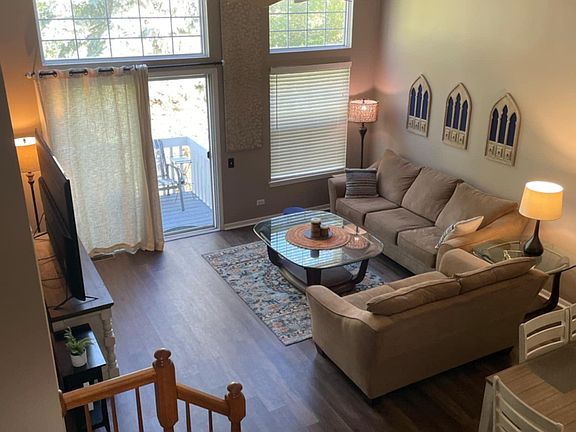 Gorgeous 2 bedroom, 2.5 bath end unit townhome with finished basement and a loft. Conveniently situated in a very well maintained area close to shopping, restaurants, and Metra station Both bedrooms are equally spacious and have large walk-in closets. The main floor bedroom has an en suite bathroom, 2nd full bath upstairs, outside the 2nd bedroom. All bathrooms have been tastefully decorated, and the whole house is freshly painted. Brand new, quality LVP flooring flows throughout the entirety of the main level as well as the upstairs level. Brand new plush carpet in the basement. Possible 3rd bedroom in the basement. Bright white cabinetry and all brand new SS appliances in the kitchen. One year warranty included.