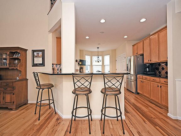 • Features: Window Treatments, Breakfast Bar, Gourmet Kitchen, Eat-in Kitchen, Pantry, Wood Cabinets, Hardwood Floors