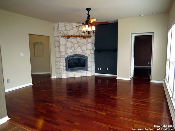 Beautiful Hill Country Home @ Canyon Lake! Spacious floor plan w/many custom decorator touches! Spacious rooms including lg separate dining rm w/custom star design in ceiling, study, big family rm upstairs w/built-in shelves! Art niche in entry, gas fireplace in living rm. & fireplace on large deck out back! Nice kitchen w/double oven & microwave + spacious pantry! Lots of wood flooring & newer carpeting. Great master bath w/separate tub & shower, 2 walk-in closets! Very clean! Nice Lot w/many mature trees!