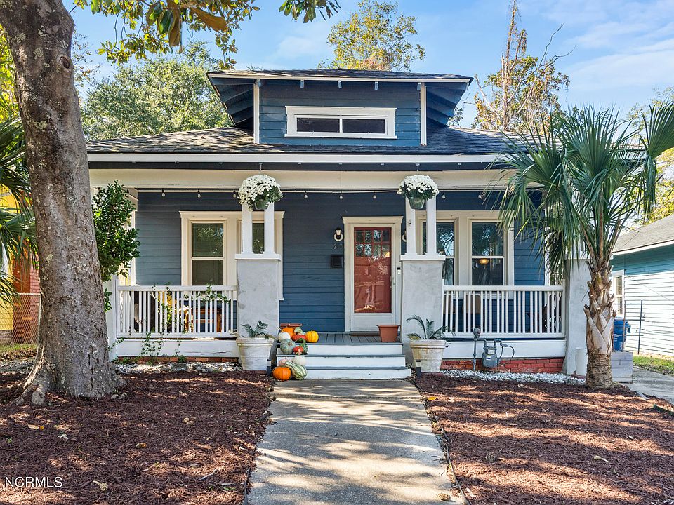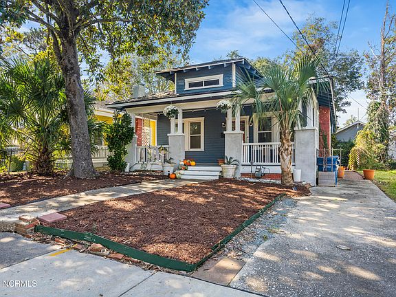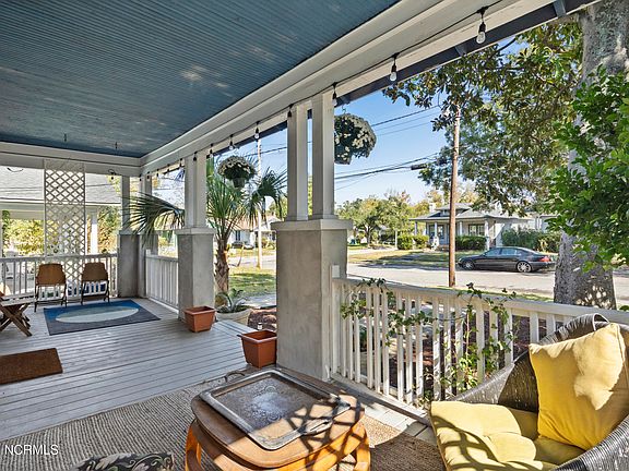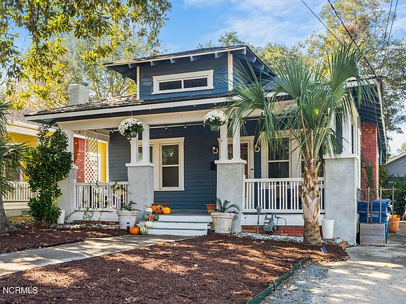 Move right in - turnkey ready! Additionally, a perfect home for your downtown area investment. Furnishings and contents are negotiable. Located within walking distance to many of Wilmington's most popular restaurants, breweries & much more in the heart of Wilmington's Soda Pop district. The covered rocking chair front porch welcomes you to this 3 bedroom 1920's home which has been updated yet still retains its original charm featuring 9 1/2 foot ceilings, hardwood floors, and crown moldings throughout. This home offers a spacious and open living room with fireplace, large dining room, and sunny kitchen with new stainless steel appliances, including a gas cooktop and walk-in pantry. The back of the house has been remodeled to include a new deck as well as an enclosed shower. Three bedrooms provide flexibility for a home office, primary bedroom and guest room. This charming home is perfect for entertaining in and outdoors. Close to the historic Riverfront, farmer's markets, medical facilities & less than 10 miles to Wrightsville Beach.