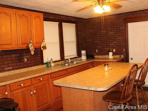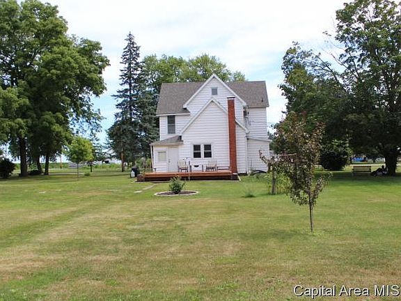 Classic home in small community, just outside Taylorville. Home is located on 3 lots with plenty of space inside and out! Original woodwork, floors and doors. 3 generous sized bedrooms, along with remodeled bath, kitchen with pantry, and laundry room. Den/dining, office/parlor and living room space. New roof, deck, septic laterals/spring 2012. Wrap around covered porch, large unfinished attic and basement, most replacement windows. Many new trees and landscaping.This home has it all!