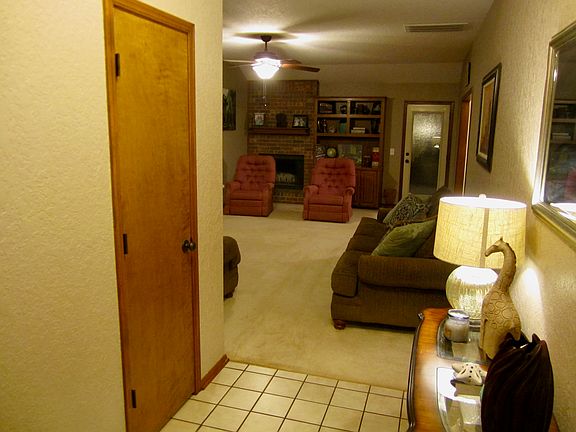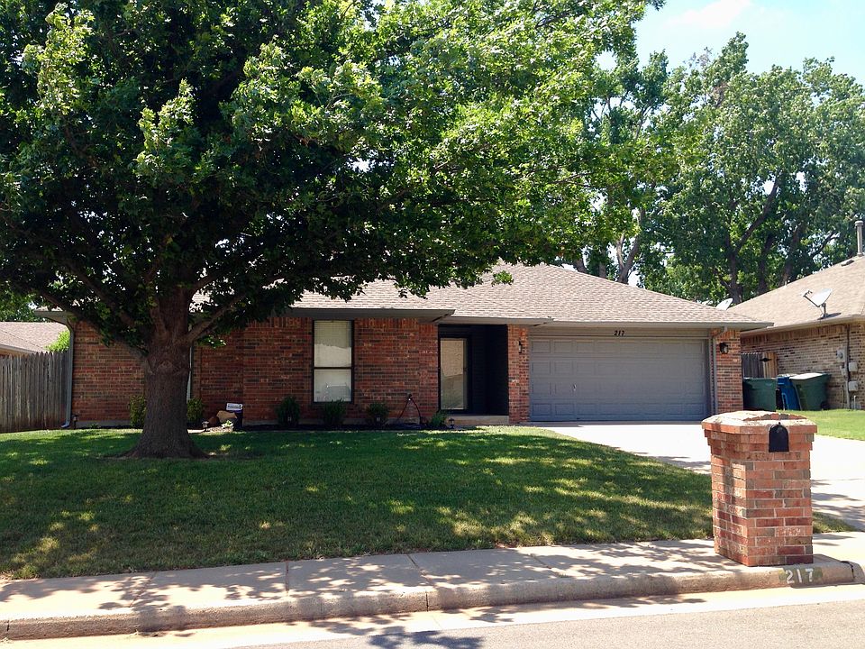 Pristine home with new carpet throughout! Living room is over sized with brick fireplace and built in bookcase. Open kitchen with great counter top space, granite, stainless steel appliances and built in buffet. Master bedroom is separated from secondary bedrooms with large bathroom, tub, shower and walk in closet. Secondary bedrooms have fans and awesome closet space. Hall bath has been updated with granite and new tile in bathtub & shower. Wonderful, covered patio and fenced in yard. Storm shelter is located in garage. NEW roof in 2019. Some updates include: granite counters, backsplash, sinks, garbage disposal, appliances (4 years ago), Tornado Shelter, Water heater (4 years ago), New Electrical fixtures (outlets and light switches), door knobs, interior and exterior painting. This home is move in ready and in a great location! Don't let the square footage fool you! Every inch has its purpose, no wasted space here!