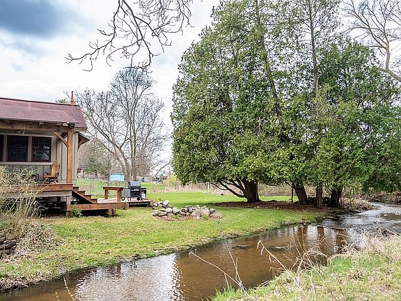 Step off Main Street and into your own up-north hideaway—without leaving town. Tucked along one of Rockford’s most coveted downtown streets, this .44-acre property delivers a rarity: Rum Creek flowing through the backyard. Open a window, and the soft rush of a trout stream (protected by the DNR) becomes your soundtrack for dinners, Zoom calls, and falling asleep.