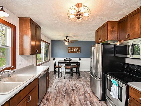 Beautifully updated 4+ bedroom, 2 bath ranch home with 2 stall garage. 3 bedrooms on main floor. Newer Stainless Steel Appliances, Cabinets, AC unit, Flooring, Interior Paint, Doors, Trim, Fixtures and windows. The lower level has a bedroom, large family room, large office with an nice sized laundry room and storage. This home has a great location which is in walking distance to schools, parks and grocery store. Large fenced back yard with mature trees and yard shed. Pets considered with references and deposit.