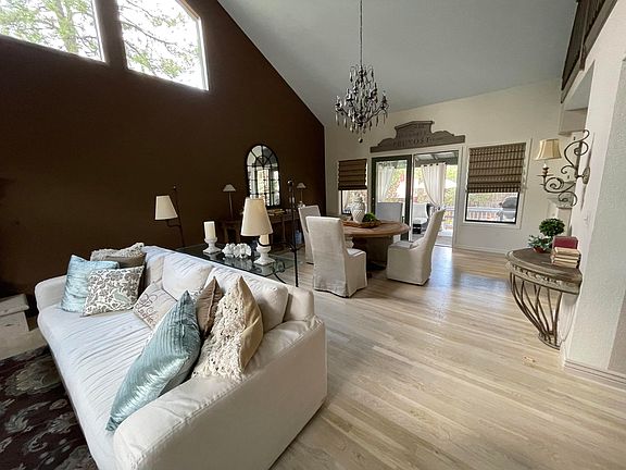 The pride of ownership and intricate details of this home are something you really have to see in person. Beautifully decorated open floor plan with white-washed oak wood floors. The custom stone wood burning fireplace is the centerpiece of the living room. Vaulted ceilings extend from the living to the dining room and the unique chandeliers were purchased at the French Bee. The open living space is illuminated by lots of natural light. The Kitchen features stainless steel appliances, granite countertops and plenty of cabinet space. The covered back porch has an intimate seating area for relaxing and a private backyard with a fountain and garden for someone with a green thumb! The master bedroom has a private porch and plenty of room to move around.
