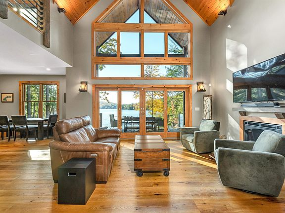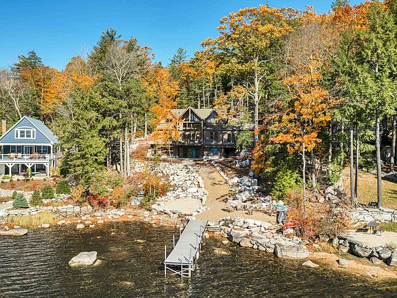 This striking architecturally designed home is set back along 112' of crystal clear Merrymeeting Lake shoreline! Built to exacting standards, every room enjoys breathtaking views of the lake. Built in 2021, this home has 3 bedrooms and 3 baths. The home looks like a small cottage from the front but looks are deceiving - there are 3,320 sq. ft. featuring an open concept main level with a 2-story great room with a see-through fireplace to the master bedroom, custom designed kitchen and a large back deck. Additional features include cathedral ceilings with beautiful wood details, custom blinds, whole house generator and so much more. One bedroom is located in the finished basement that was completed in 2022. and includes sliding doors with a beautiful view of the lake. The basement also includes a bathroom, a large living room and another room for additional overnight guests. Custom vanities, beautiful light fixtures & a comfortable sunroom off the dining area for morning coffee & helps to make this gorgeous house a truly perfect home. There is a large sitting area & a perched beach on the lakefront, including a 40' dock for paddle boarding, kayaking, jet skiing, boating and swimming in the beautiful Pleasant Cove. Under 2 hours from Boston and just a half hour to ski country, hiking trails all around the lake, just 15 minutes to Lake Winnipesaukee & 25 minutes to Wolfeboro. The 1.14 acre setting is serene on the quiet side of the lake & with lots of parking for your guests.