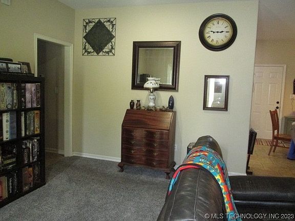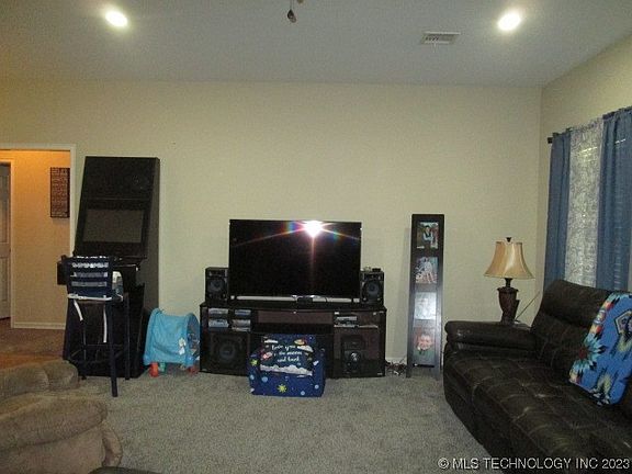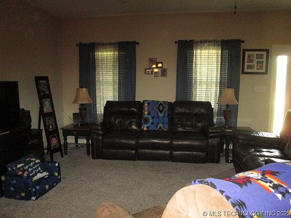 Cute house & great neighborhood in Fort Gibson School District. Open living/dining. Granite counter tops and big pantry in kitchen. Split floor plan. Double sinks, whirlpool tub and separate shower in master along with a makeup vanity. Large backyard with privacy fence for family get-togethers with above ground pool. Storage building stays also.