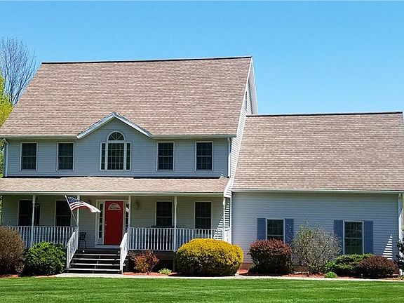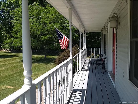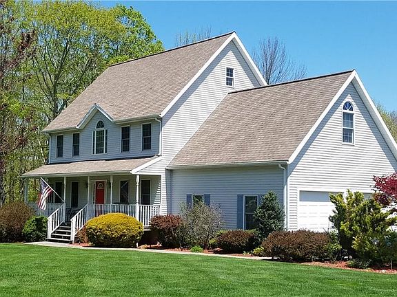 Suddenly back on the market due to buyers' inability to secure mortgage Own this fabulous home Located mid-way between HTFD and Groton, this beautifully maintained 3/4 BR col. set on 2+ acres is framed original New England Stone Walls & stunning landscaping. Enter into your own private hideaway from the front porch and through the bright red door into the cathedral foyer centered between the formal DR and bar (or living room. FR/with wood burning fplc opens to the kitchen. Two sets of sliding French doors lead to the 3 season sunrm, back deck and patio with fire pit and Jacuzzi hot tub and spacious back yard with horseshoes pits. The second floor brings you to the large bright master bedroom with walk-in closet and full bath. Additional full bath with linen closet, 2 bedrooms and a 3rd room once used as a media room, now converted back to a private bedroom. This well maintained home includes all appliances, as well as a front loading washer and dryer set, located on the 1st floor, with additional hookups in the full basement. Wired for home security, along with one of the best assets of this New England home, is the WHOLE HOUSE 20kW auto-on generator, fueled by the 500 gal underground propane tank. If the power were to go out, the generator will turn on automatically with no assistance from the homeowner. Equipped with wireless monitoring, you will be alerted via text message or email about any activity or notifications. Never go days or weeks again without power
