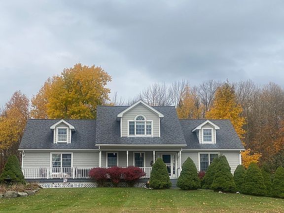 Nestled on top of the world in the heart of the Catskill Mountains, this magical home is the perfect place to find privacy, wildlife, incredible views and the serenity of the mountains while also enjoying all the amenities of a modern, high-end home and a town full of quaint country charm.Located just 3 hours from NYC this home offers many opportunities for outdoor recreation and adventure. Windham and Hunter Ski Mountains and Cooperstown with its many baseball attractions are each an easy 45 minute drive. Oneonta is just 30 minutes away with its many shopping options. There are also miles of snowmobile trails and nearby State Forests and Parks for hiking, hunting and exploring.The 12+ acres of land is situated at a high point in the region which means a rare combo of elevated mountain views and flat yards! The property has been professionally landscaped and features mature forests, planted gardens and trees, and acres of yards and fields.The house is set back from the road for absolute privacy. As you step through the front door from the covered porch you're greeted with a bright and open dining room and living room space separated by a grand staircase. The living room has ample room for entertaining with a vaulted ceiling and a gas or wood fireplace. The tiled kitchen has high quality appliances, plenty of counter and pantry space, and an impressive breakfast nook. A doorway leads to a laundry room which doubles as a mudroom and access to the deck. There are three bedrooms on the 1st floor, including a master on-suite which offers one floor living options. Up the grand staircase the loft gives off den-like vibes perfect for casual time with the family family or a perfect home office. Adjacent to the loft there is a half bath and a huge unfinished storage room that could be converted into a very large bedroom or office. The impressive semi-covered deck is also accessed from the set of french doors in the living room. When you want shade or shelter you can sit under the extended roof at the bar and watch the deer grazing in the spring rain. When you want to soak in the summer sun there's a hot tub and plenty of open deck. The full basement is divided into a two car garage and a utility/storage space. The poured concrete foundation has been insulated and the whole space is dry and fresh. All its major systems are in excellent condition. The roof has decades to go and the vinyl siding reduces property maintenance costs significantly. This contemporary home was meticulously built and has been maintained to the highest standards. It exudes warmth and elegance. This one won't last long - call to set up your private tour!