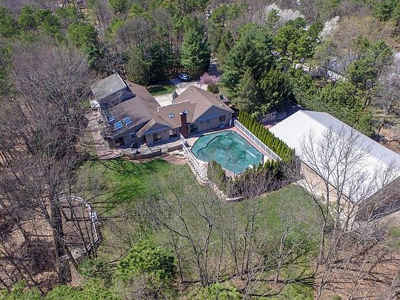 This custom built, expanded ranch is truly one of a kind! The beautiful entry foyer welcomes you home! Spacious living room with a fireplace and two sets of sliders, formal dining room, gourmet white kitchen with stainless steel appliances, large center island with prep sink, breakfast nook, & fireplace! Family room with a cathedral ceiling, custom wet bar, and skylights for plenty of sunlight! An expanded master bedroom fit for a king & queen boasting a sitting area, luxurious spa bath with a jetted steam shower and large jacuzzi tub, sliders to the balcony, beautiful picture windows, and spacious walk-in closet! Four first floor bedrooms, two with en-suite bathrooms, totally renovated main bath, full finished basement with rec room, exercise room, full bath, and plenty of storage! Other interior upgrades include skylights galore for natural sunlight, recessed lights, two zone heating, two hot water heaters, recirculating water system, tinted windows and doors, alarm system, Anderson windows, & more! Exterior is a mechanic's dream--a detached 48 x 72 heated garage with electric that can fit up to 8-10 cars! Relax and staycation in your own yard with a Sylvan in-ground pool and paver patio!