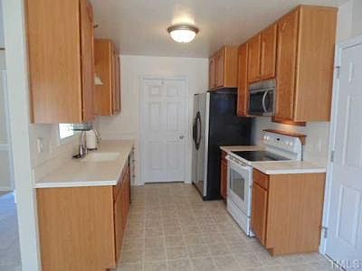 RARE FIND: 3 BR, 2BA RANCH ON LARGE, FLAT, FENCED LOT! Lovely, well kept home in great location! Over .5 acre lot. 3 season room, storage shed, upgraded cabinets,corian counters,large pantry, vaulted ceilings. Soaking tub with sep shower,large WIC in Master. Stacked front loading W/D & stainless steel fridge convey! Near shopping;short drive to Raleigh/RTP. Near 70 and 40.
