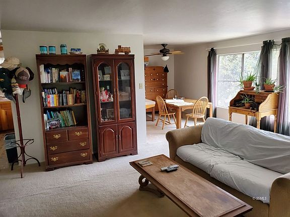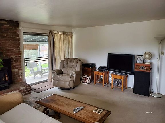 Charming home with 3 bedrooms, 2 baths, fireplace with wood stove insert, & freshly painted interior. Large picture windows in living room to take advantage of the views. Slider goes out to covered patio with green lawn & mature shrubs & plants. A great place to relax & enjoy the sunrise or sunset. Further back in the yard is an in ground pool & another covered patio. Double gates provide access from the adjacent lot, which is included. Two car garage is below the home with plenty of parking in front. The additional lot provides parking for the toys & elbow room!