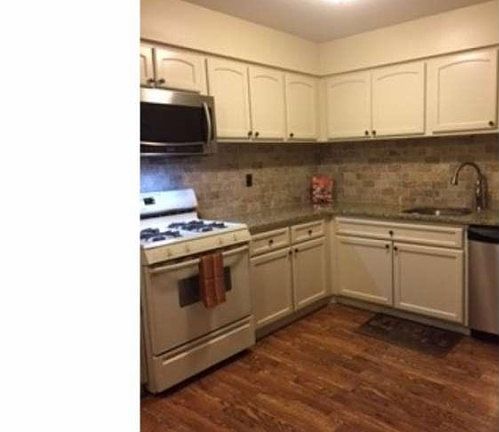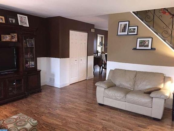 Welcome Home! Beautiful spacious row home featuring a foyer entrance that leads up to the living room and dining room and new wood floors throughout. The beautiful kitchen has been redone with white cabinets, granite counter tops, custom back splash and stainless steel appliances. There is a French door in the kitchen that leads out to a large wood deck. All 3 bedrooms have newer wood floors, ceiling fans and is tastefully custom painted. New Modern hall bath has a custom tile and an extra large walk in shower with Oil-Rubbed Bronze Fixtures & Tile Surround, New Vanity with a double sink and new Fixtures. The master bedroom also has new floors, ceiling fans and is custom painted. The Finished basement has a tile floor and is divided into a family room and a private office by double glass doors . The lower level leads out to a large fenced in rear yard. This home is neutral and is in complete move-in condition.