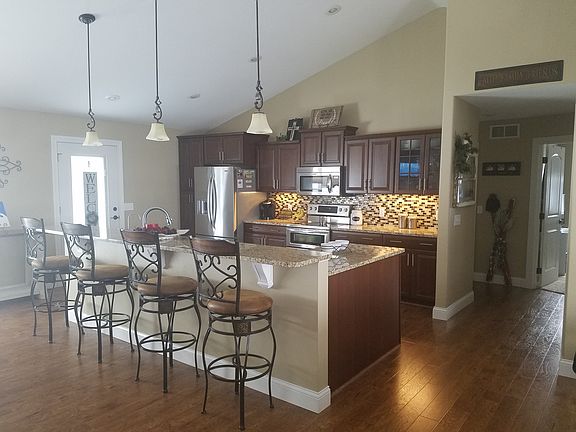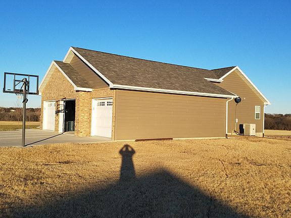 PRICE REDUCED! Country living close to town! Finished in May 2014. 1900 sq. ft upstais, approximately 1700 finished space downstairs. Open concept floor plan with vaulted ceilings. Large island in the kitchen, granite countertops, gas fireplace upstairs, 3 bedrooms on the main level with two bathrooms. Master bedroom features a walk in closet, master bathroom with double vanity, soaker tub, and shower. The main floor also has an office and laundry room. The walk out basement has 9' sidewalls with two bedrooms, one bathroom, a 10'x10' safe room, large family room with wet bar/kitchenette, and a playroom/media room. There is a large 10'x20' utility/storage room. There is a concrete patio the entire length of the back of the house. The house is on rural water, natural gas, on-demand water heater, and septic system. Large insulated 3 car garage (30'x34') and fully insulated 12'x16' storage shed all on a 3 acre lot. The front and back yard have an underground sprinkler system. Cement siding, full guttering, and heavy duty malarky shingles complete the outside. Located just outside of city limits. Asking $374,000 or best offer. Serious inquiries only