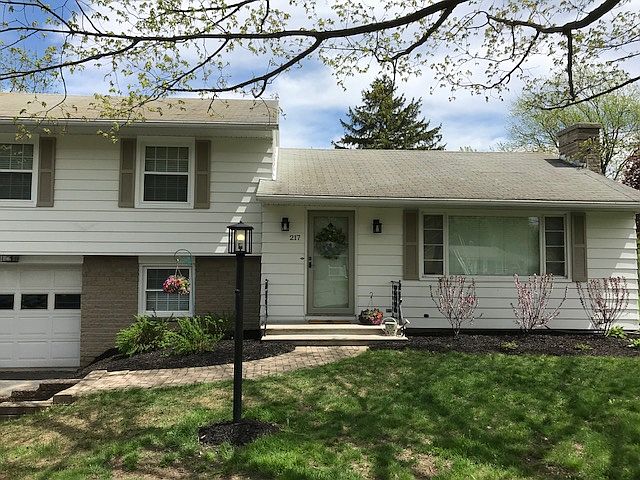 Come check out the brand-new landscaping! This loved tri-level split is just down the street from East Hill Elementary in the West Genesee school district. Up and coming multi-generational neighborhood with regular dog walkers, runners, and friendly neighbors. Yard comes equipped with Invisible Fence, new outdoor lighting, stone patio, beautiful sugar maple in the front providing privacy, four flowering dogwoods in back, and numerous flowering shrubs, plants, and fresh mulch. Newly installed comfort windows, high-quality blinds, and storm door. Central air is a joy in the summer months! Original yellow laminate kitchen countertops and chrome details make this kitchen a bright classic. Neutral paint tones throughout accommodate any furniture taste and style. Three bedrooms and full bath upstairs each with more than adequate closet space, plus easy access to large storage attic. One car garage that opens indoors to the large lower floor entrance/den with access to the laundry room and half bath, plus easy access to the 220 sq. ft. unfinished basement.