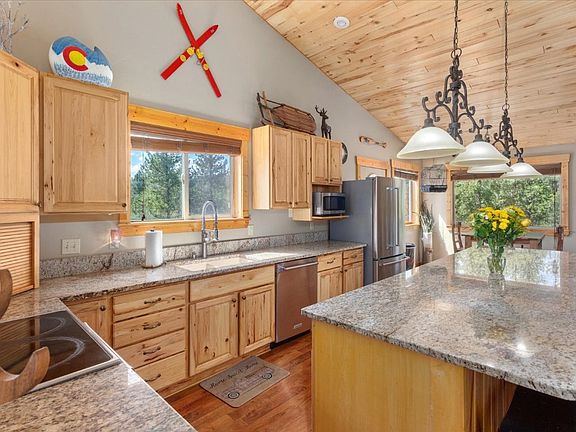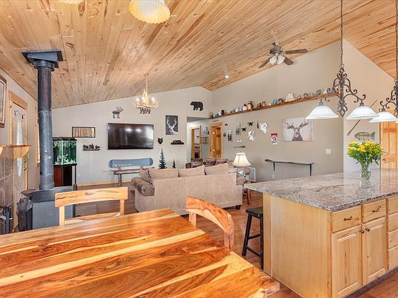 This spectacular home is situated in the desirable Twin Lakes mountain community featuring 5 bedrooms, 3 bathrooms and an attached 2-car garage on 0.7 acres! You're greeted with an open concept living room and kitchen with high tongue and groove ceilings from the covered half-wrap around porch. The living room offers a wood burning stove for those chilly nights with LVP flooring throughout for easy maintenance. The kitchen is a showstopper with an oversized island, granite countertops, custom wood cabinets with ample storage, large walk-in pantry and dedicated dining space with access to the back deck. Off the kitchen is a den or breakfast nook to enjoy your morning coffee. On the main level, there are two bedrooms and a primary bedroom with ensuite. The primary has access to the main floor laundry room with washer, dryer and additional storage. The basement offers additional living quarters for a rental investment, mother-in-law suite or extra space for your guests with a separate laundry area with washer/dryer, two large bedrooms, large bathroom with shower/tub combination plus a full kitchen with open concept living room, dining area and rec space with a pool table. The basement has backyard access featuring a unique ski fence for privacy and room for your furry friends. The backyard has a fire pit area and room to roam and play. The log exterior has recently been stained and the mature landscape offers privacy from neighbors on this beautiful corner lot. The oversized garage has space for 2+ cars and storage for all your gear. There is a dedicated mud room off the garage to store your shoes and coats with access to a private deck off the side of the home. This property offers space for your family, guests and income potential. Twin Lakes, Mount Elbert Forebay and the Arkansas River is minutes away. Leadville is 15 minutes north, Buena Vista is 25 minutes south and you can tale Independence Pass 45 minutes over to Aspen during the summer/fall months.