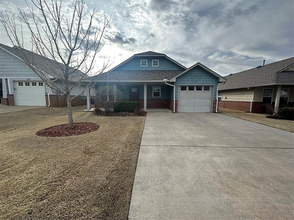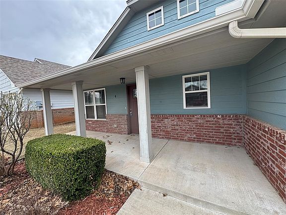 Beautiful home with an open floorplan, built-in shelves, lots of natural light and ceiling fans in living room and bedrooms. The flooring is luxury vinyl plank flooring and tile. The kitchen offers a walk-in pantry, breakfast bar and granite countertops. The master suite boasts a private bath and walk-in closet. Covered Front Porch, Back Patio, fenced yard. Lawn care is included in the HOA! Edmond Schools, easy access to highways, close to shopping, restaurants and downtown Edmond.
