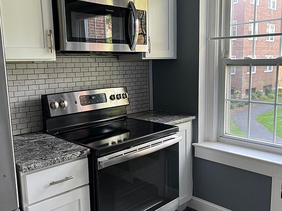 Beautiful 1st fl unit, hardwood floors in the Large BR and combo LR/DR, Updated Kitchen, Great views of manicured courtyard, lots of natural light. Less than 10 minute walk to beautiful downtown Cranford & train station. Lots of walkable restaurants. Viewings available this Saturday and Sunday 10/9 & 10/10 Tenant pays for electricity. Water and heat are included in monthly rent. No smoking, no pets, and renters insurance required. Minimum 12 month lease. No nailing into walls, but items can be hung with command strips.