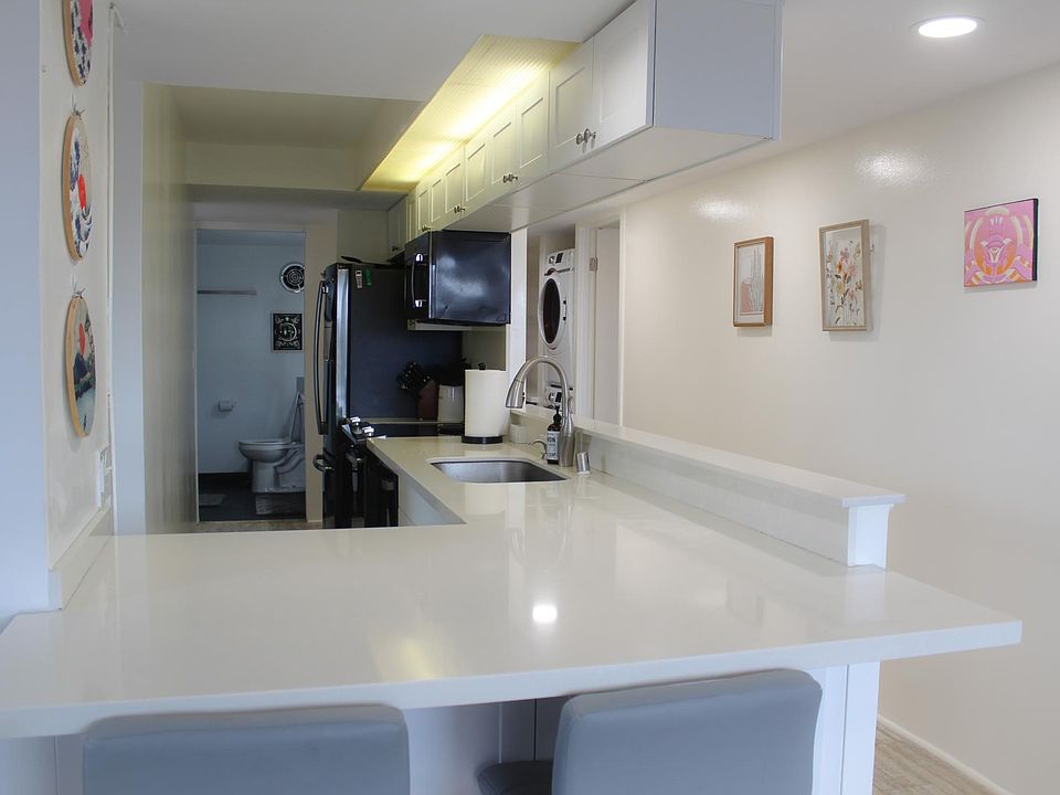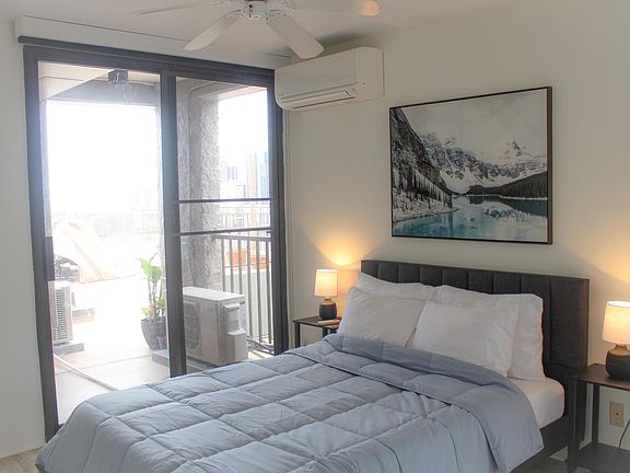 Make yourself at home for a while in this newly renovated, modern 2 bedroom|2 bathroom corner apartment in the centrally located, yet quiet Punchbowl neighborhood. The interior is just over 1,000 square feet with a galley kitchen + breakfast bar that opens up to a lovely living area that includes a home office space. Take in gorgeous views and the refreshing Hawaiian breeze from the unparalleled 870 square foot lanai that overlooks the city of Honolulu. The unit is artfully decorated and fully furnished with everything you need, including a split A/C system and Wi-Fi. The rental also includes 1 standard parking stall and 1 compact parking stall in a secure garage. KITCHEN/DINING This unit features a full kitchen + breakfast bar, with 2 swiveling bar seats (height-adjustable), a full-size fridge/freezer, dishwasher, large kitchen sink, stove + oven, microwave, toaster, blender, and coffee maker. Includes basic cookware, cutlery, coffee mugs, cups, plates, bowls and more. LIVING AREA This condo's open concept living space features an L-shaped couch, coffee table, and 65'' flatscreen tv. Located behind the couch is a workspace, including an adjustable standing desk, office chair, and computer monitor. BED/BATH 2 private bedrooms + 2 bathrooms. The guest bedroom includes one full size bed (sleeps 2), bedside tables + lamps, and a spacious walk-in closet. The newly renovated guest bathroom features a large standing shower, toilet, sink, and vanity area. The master bedroom includes one queen size bed (sleeps 2), 2 closets, and a 55'' flatscreen tv. The master bathroom features a double sink/vanity, toilet, and tub/shower. OUTDOOR AREAS This condo has an incredible 870 square foot lanai facing the south shore of downtown Honolulu. The view faces the sunset and has an outdoor dining table with seating for 4. BUILDING AMENITIES The building has amenities such as secured entry and parking, as well as 2 tennis courts with an amazing view of Honolulu, a heated pool, and jacuzzi. LOCATION Nestled in the Punchbowl neighborhood, this property is on Prospect St., and is very private and quiet. It is also conveniently located only a matter of minutes from the main H1 freeway, offering easy access to the island's diverse offerings. Just above the bustling Ward, Ala Moana + Kaka'ako neighborhoods, it's only a short drive to great shopping, restaurants, museums, beaches, and other activities to enjoy! Novation Realty LLC, RB-22567 Pets are negotiable. No smoking allowed. Renter is responsible for electricity and GET. All other utilities included. 6-month lease term preferred. Monthly rent for long-term lease, 6 months or more = base rent + renter responsible for 4.5% GET tax + electricity. *Short-term available (3-mo min) - please inquire for ST pricing*