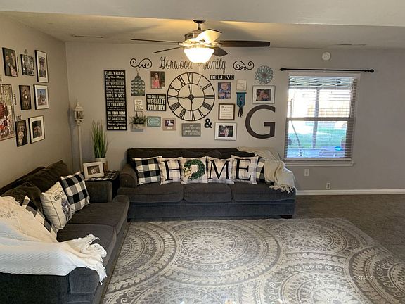 Beautiful front yard welcomes you into this home on 1 1/2 lots with RV parking! Enter, thru the atrium with sky lights, into 1731 sq ft with spacious great room. The kitchen has a stainless fridge, newer double ovens with brick surround, newer stainless dishwasher & gas cooktop. No popcorn ceilings, newer: paint, fans & blinds. Walls re-textured & baseboards replaced thru-out except master. Milgard low-E windows & slider, tankless water heater, two evaporative coolers with separate thermostats, heater replaced with a Carrier unit, newer bedroom doors/knobs, water softener & ethernet ports. One MasterCool ducted to bedrooms & 2nd one serves the living area. There is electricity & ducting for an AC unit. Master suite has a walk-in closet. Children's bedrooms have new fans & one has ceiling recessed lights. Fourth bedroom would be a good office, exercise room or nursery. The guest bathroom tub & tile were replaced. The backyard is landscaped with a covered patio & new shed. Insulated garage door & newer heavy duty, high cycle springs. The automatic door opener (2019) has a wireless keypad, battery backup with smartphone monitor & control? programmable to your car