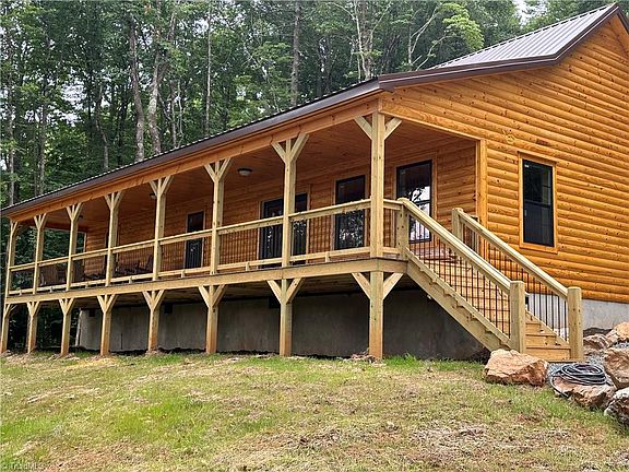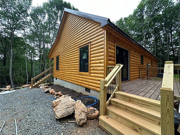 Welcome to your new mountain retreat nestled off the scenic Blue Ridge Parkway. This newly constructed log cabin is situated on almost 3 1/2 acres of Predominantly wooded land; a secluded oasis provides tranquility and privacy in a quiet community. With 1400 ft. of space, this home features three bedrooms and two bathrooms, including a spacious master bedroom with a walk-in closet. Yellow pine, wood flooring, tongue and groove walls, two full baths, one with tub and shower combo and one with shower Sterling Kohler fixtures. Ventless, insulated crawlspace. The open-concept layout seamlessly connects the living room, kitchen, and dining area, creating an inviting space for gatherings and relaxation. Outside, a large deck, spans the front of the cabin, offering breathtaking views from the porch swing and rockers, with a smaller deck at the back that provides a cozy spot for enjoying nature. More Inside Pictures Coming Soon.