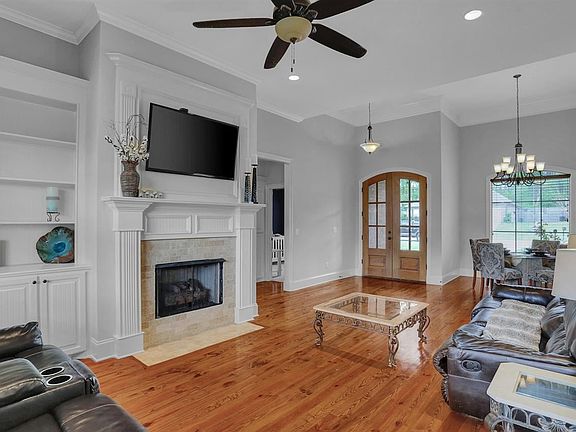 As you enter the front door of this beautiful 3 bedroom/2 bath split plan home in Falls Crossing, the gorgeous hardwood floors and high ceiling catches your eye. The built-ins and gas log fireplace add character and charm. A formal dining space provides ample space for large gatherings. Eat-in kitchen has tile backsplash, granite coutertops, and stainless appliances. A short hall leads to the garage and laundry room. Spacious master bedroom with relaxing master bath containing a jetted soaker tub, separate shower, dual sinks, and a large walk-in closet. 2 additional bedrooms and a bathroom are by the living room. The fully-fenced backyard completes this lovely home. Don't miss it! Call your agent today.