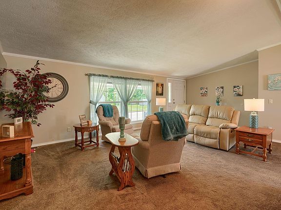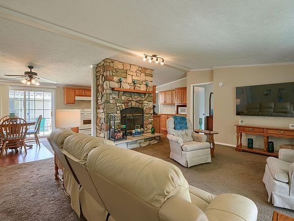 Freshly painted double-wide with 3 bedrooms and 2 full baths. Includes large open floor plan, vaulted ceilings, fireplace, and great natural light. Home is located on a large corner lot. New Roof with transferable warranty. New back deck/steps from back sliding door.