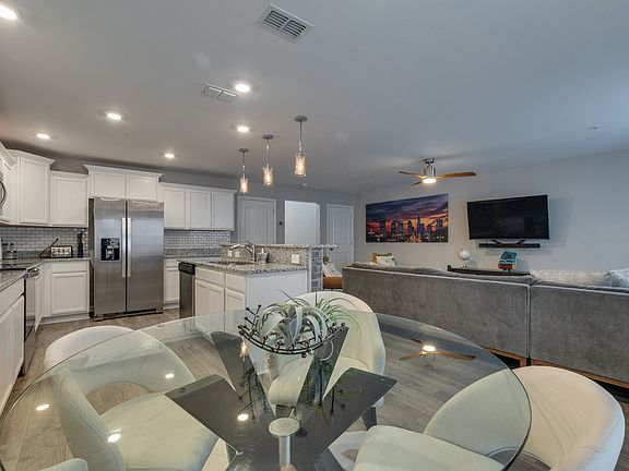This 2021 built Spring Hill townhome is situated less than 5 minutes from Saturn Parkway’s entrance to I-65. Its open floorplan is updated with luxury dimmable lighting, ceramic subway-tile surrounds in the kitchen and owner’s bathroom, and a cable management system added to the living room for an enhanced movie-watching aesthetic. Enjoy preparing meals in your fully-equipped granite kitchen with ample storage and countertops, stainless steel appliances, and a walk-in pantry. Check out the smart layout – ½ bath down and 2 full baths upstairs and get comfortable on the plush, carpeted bedrooms upstairs with tile flooring in the bathrooms and upstairs laundry. Private patio with no neighbors behind. Move-in ready. This new community offers walking trails, grilling areas and a playground for