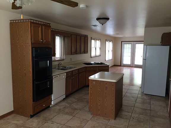 This ranch style apartment offers an open living room and eat-in kitchen for modern living. The double oven is ideal for cooking enthusiasts, and there's plenty of storage to keep things organized. With three comfortable bedrooms, it accommodates families or guests easily. The single bathroom is well-appointed and practical. Durable vinyl flooring makes maintenance a breeze, while ceiling fans and mini blinds provide comfort and privacy. The primary bedroom features a walk-in closet for extra storage. This home combines practicality and style, creating a welcoming space.