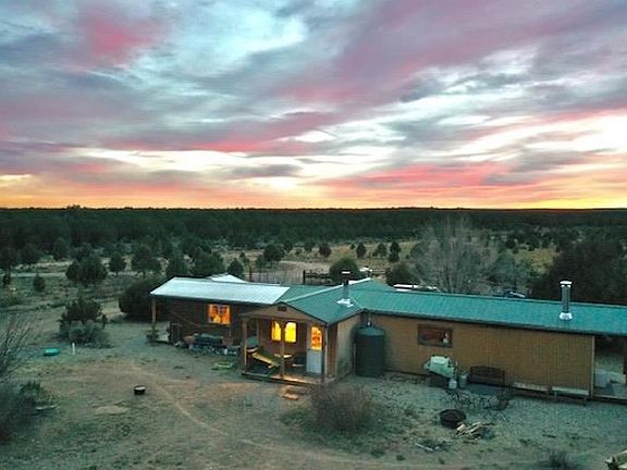 PRICE REDUCTION: Rural, sustainable, off-grid living. Old fashioned comfortable rustic cabin, private Well, solar powered with two separate systems in place, indoor hand-pump, outbuildings, side-room shower, composting outhouseand all the berries & fruit and garden area needed. Big trees. Mature old growth pinon. Grey Water system for fruit trees with a frost-free faucet and several cisterns. Set up for livestock especially Horses. Stall & pipe corral. Many possible homesites on the property. See it to believe it!