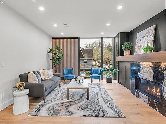 Discover a new level of luxury in this flawlessly executed contemporary home in John's Landing! Situated on a desirable corner lot in a walkable neighborhood you have access to long walks, cozy restaurants, shops and and local bars nearby. This property gives you access to an income producing opportunity for a potential renter, and offers convenient location as it sits near the river between downtown Portland and Lake Oswego. See and feel the difference that surrounds you as you enter. Premium finishes and materials create a sophisticated yet inviting atmosphere. The open-concept design features soaring ceilings, oversized floor to ceiling windows, a marble fireplace, glowing accent lights throughout, open staircase, and floating Ann-Sacks sink. The kitchen is a masterpiece, equipped with top-of-the-line appliances, custom hood vent, hand laid tile, an oversized island with a large pantry and custom cabinetry. The thoughtful floor plan includes a flex space that could be used as an additional dwelling unit (ADU) with its own private entrance, covered patio, kitchenette, water heater, zoned heat/cool, washer & dryer, sub-panel and a full bathroom with a walk-in shower that was designed for accessibility. Perfect for multigenerational living, guests, or rental income. The space may also be used as an office or bonus family room or activity room for the holidays. From the luxurious primary suite to the spa-inspired bathrooms, every detail has been curated with comfort and style in mind. Unique features and unparalleled craftsmanship make this home stand out from any other new construction you've seen on the market. Don’t miss the opportunity to own this one-of-a-kind property in an unbeatable location. Schedule your private showing today!