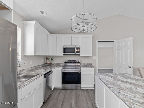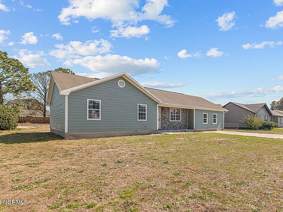 Welcome to this newly remodeled home in the neighborhood of Cinnamon Ridge. This 3 bedroom/2 bathroom home is located close to area shopping/dining in Swansboro and a short commute to the 172 gate of Camp Lejeune. Updates include all new stainless steel appliances, kitchen cabinetry with soft closing drawers, LVP flooring, vanities, light fixtures, ceiling fans, HVAC, repaired driveway, and freshly painted.