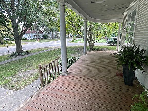 This charming home has a beautiful wrap around porch with all cedar ,was replaced in 2021.This is a 4 bedroom 1 full size bathroom that has been completely renovated in 2023, 1 partial bathroom that has been updated in 2023. Shower in basement with large laundry area with laundry sink. Kitchen remodel in 2023 with Quartz countertops and self closing pull out cabinet with built in pantry, and farmhouse sink. Large Living room/ dining room with built in shelves with a large fireplace that was updated in 2021, that can be converted easily to have a gas log insert , fireplace can burn wood as well. Large closets and extra closet inserts. New carpet was placed in the entire upstairs in 2023. Large office with built in bookshelves and pocket doors. Large two car garage with new garage door in 2023 with key pad entry, new roof done in 2021. New black top drive done in 2023. All appliances will sell with the house. All measurements are approximate not guaranteed.