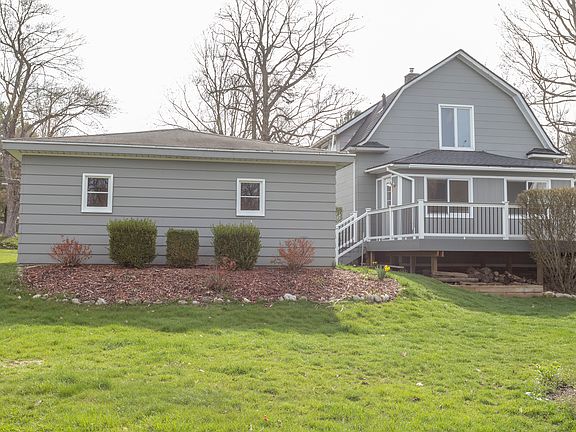 Pleasant Rockford home located on a quiet street on the Rogue River. This home is in walking distance to downtown shops, restaurants and the Dam. Access to the White Pine Trail is just down the street. 2 carpeted bedrooms up and 1 down Sitting area at top of the stairs perfect for an office Central AC, Original hardwood floors on main floor and woodwork throughout .Kitchen is open to dining room Enclosed front and back porches New composite deck Detached 2 stall garage with opener 1year