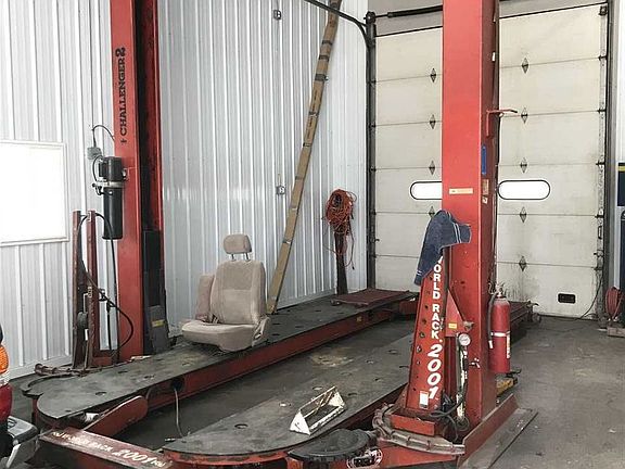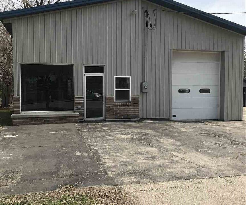 MULTI USE BUILDING!! Everything new since 2011!! Plumbing, heating, electrical, water heater and bathrooms with one plumbed for shower. Original block building reinforced with re bar & tuck pointed. Steel lined inside and out. 2 post hoist and air compressor included in sale. Curtained off area with ventilation for painting. 12" insulation in attic and double windows. Roof water drains into dry well behind building. Partially fenced om back gravel lot. Very nice front office.