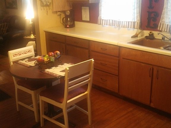 WHITE WITH BLACK SHUTTERS AND ENCLOSED FRONT AND REAR PORCHES HIGHLIGHT THIS TWO BEDROOM BUNGALOW, AN OPEN EAT IN KITCHEN THAT HAS SPACE FOR THE WASHER AND DRYER. RANGE TOP WITH A BUILT IN OVEN AND REFRIGERATOR. GAS FIRED FURNACE AND CENTRAL AIR FOR A SOLID HOME. GREAT STARTER HOME OR INVESTMENT PROPERTY
