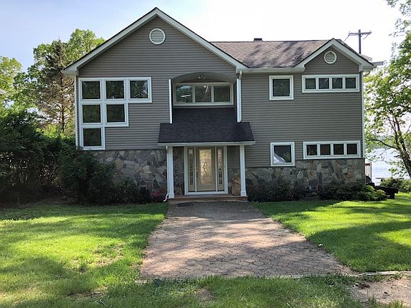 135 ft Lake front sandy bottom swim with amazing sunset views! Stylish custom design boasting open floor! 4th bedroom option for 1st floor off full bath. Detached Cottage, bring your ideas,1 hr to NYCLevel lake house with amazing outdoor living space offers huge 36 x 26 ft deck just steps to the lake front dock. Entertain in style overlooking scenic treed views in this tranquil 5 mile per hour no wake zone location. 2 steps up to front entry foyer, direct lake front views from the moment you step in! Kitchen with stainless appliances, wood cabinetry open to living & dining rm & family rm & fireplace. Bonus rm with French doors & full bath on main! 2nd floor sun deck accessible off master & 2nd bdrm offers total privacy! 3rd bedrm & full bath. Opportunity to add a garage. Detached cottage "bring your ideas".
