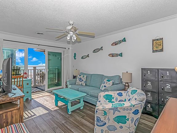Rarely do these units become available!! Wake up to stunning ocean views and sip your morning coffee on the extended balcony that connects to the living room and bedroom. Just steps away from the sand with beach access right outside your door. This furnished condo has updated flooring, plumbing, and fresh paint. In unit washer and dryer! In the heart of Surfside and close to all the restaurants, local festivals, and future pier! LOW HOA that includes building insurance. Do not hesitate on this one! Would make an excellent primary, secondary or investment property!