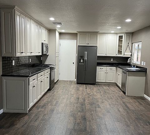 Updated home in quiet area. SE part of town. Close to Elementary School and local park. Tile through out except bedrooms, double lot, new roof with solar, new water lines, new AC, new garage door, built-ins in bedrooms, Owner pays trash and electricity. Currently has Washer/Dryer, tenant has option to use until it breaks, Owner will not replace. One year lease minimum. No smoking of any kind inside home. Tenant will not have RV access.