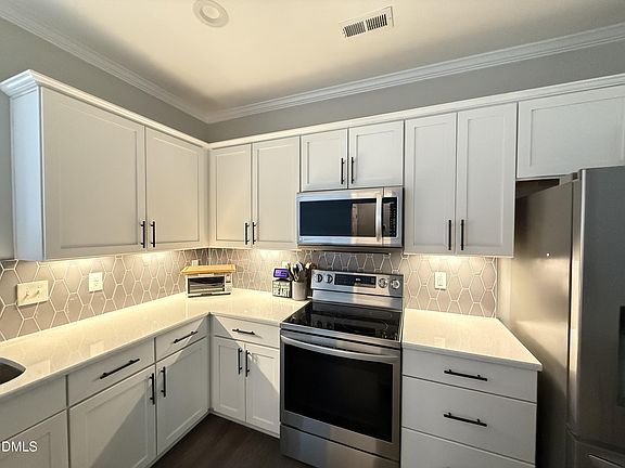Price Improvement!! Get ready to fall in love with this dreamy 4-bed, 3-bath home on a private, wooded 1.13 acre cul-de-sac lot in the beautiful Goodwin Chase community! Inside, you'll find a stylish main suite with tray ceiling, two walk-in closets, and a tiled shower made for relaxing. The living room brings cozy vibes with a shiplap feature wall, electric fireplace, and custom wood mantle. The kitchen is a showstopper—oversized island, quartz counters, upgraded tile backsplash, soft-close cabinets, under-cabinet lighting... yes, please! There's a bonus room, a handy pocket office, plus TONS of storage. Freshly painted interior, upgraded laminate flooring (carpet only on the stairs and bonus room) and LVT in all bathrooms and laundry room. Blinds already installed, this home is truly move-in ready! Outside, enjoy a fenced backyard, 12x12 screened porch, massive grilling deck, and a sparkling 24ftx52in round saltwater pool with deck—your own backyard retreat! Watch the sun rise over the super private and serene wooded backyard, and the sun set from your rocking chair front porch. Also includes a shed and encapsulated crawl space with dehumidifier. This charming home is just minutes from shopping and dining in downtown Wendell, Wendell Falls and Flowers Crossroads. Commuting is a breeze with easy access to US 70, Hwy 42, and I-87/US 264 Bypass. Don't let this one get away, schedule your showing today!