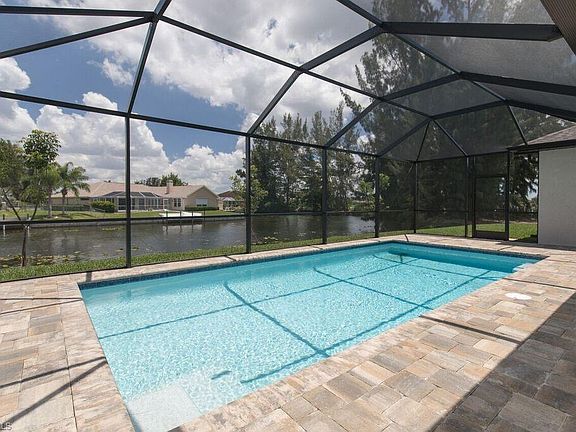 LOOK NO FURTHER...WATERFRONT and not just any waterfront....access to the largest chain of lakes in Cape Coral, wide and deep water canal perfect for boating, fishing and simply enjoying nature. This stunning 3 bedroom, 3 full bath, beautifully built AZ Sullivan Home is brimming with elegance, style and functionality. From the gorgeous 23 inch tile flooring, 8 foot interior doors, all wood kitchen cabinets, granite counter tops throughout and tiled back splash to the coffered ceiling, separate master suite with full bath, huge laundry room with upper cabinets and additonal storage closet, 3 car garage, beautiful pool and large under truss paver lanai ... this home really DELIVERS!