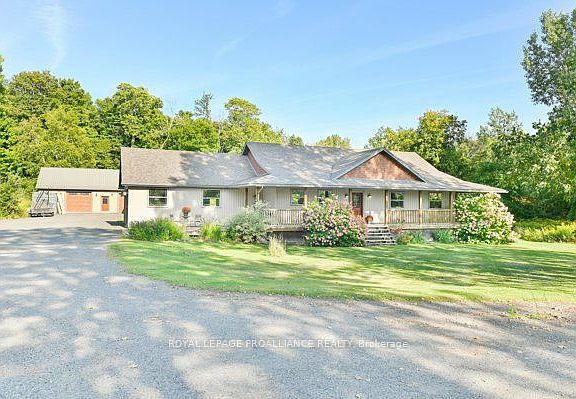 Welcome to 217 Scriver Road The Best of Both Worlds! Enjoy the peace of country living just 3 minutes from town and minutes to Hwy 401 ideal for commuters! This beautiful property sits on 3 private acres and features a spacious, open-concept main level with cathedral ceilings, a bright kitchen, and large windows that bring in plenty of natural light and showcase the surrounding nature. The main floor offers 3 bedrooms, including a generous primary suite with a 3-piece ensuite and ample closet space, plus a 4-piece main bath. The fully finished lower level includes a 4th bedroom, another 4-piece bath, and a large rec room perfect for entertaining or family living. Outside, enjoy a covered front porch, expansive back deck, and a large on-ground pool with lots of space to relax or entertain. The heated 28'10"x51'61" shop is a dream for any carpenter, hobbyist, or those in need of extra workspace. The attached 2-car garage adds even more convenience. This move-in-ready home offers the perfect balance of rural charm and accessibility. A must-see property!