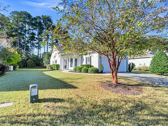 Popular Pine Spring model, in Charleston's premier Active Adult community, Del Webb Cane Bay! This home features 2 bedrooms, 2 baths, office/den, sunroom, and stone paver patio on a private wooded homesite! As you walk in you're greeted by tile in the foyer and hardwood flooring that carries throughout the main living area, den, and primary bedroom. Just off the foyer, you will find a flex space with glass French doors and charming bay window that could be used as a den, office, or even 3rd bedroom. Open-concept living with combined great room and dining room. Fully equipped kitchen featuring Maple cabinets, granite countertops, black appliances, backsplash, and 18x18 tiled flooring. Entertaining made easy with the kitchen overlooking the great room/dining room combination that also....flows into the sunroom. From there, two sliding glass doors take you outside to a stone paver patio with beautiful views of nature and trees on a private wooded homesite. This home is ready for entertaining outside this fall with friends and family! The primary suite is tucked in the back corner of the home. Primary bathroom is complete with dual sinks, walk-in shower, and a large walk-in closet. Your secondary bedroom and bath are off of a separate hallway, giving both the owner and guests maximum privacy. All appliances including the refrigerator, washer, and dryer convey making this home truly move-in ready and available for a quick closing! This home is perfect for someone looking for low maintenance living in a gated 55+ community with exceptional amenities and lifestyle, please book your showing today!