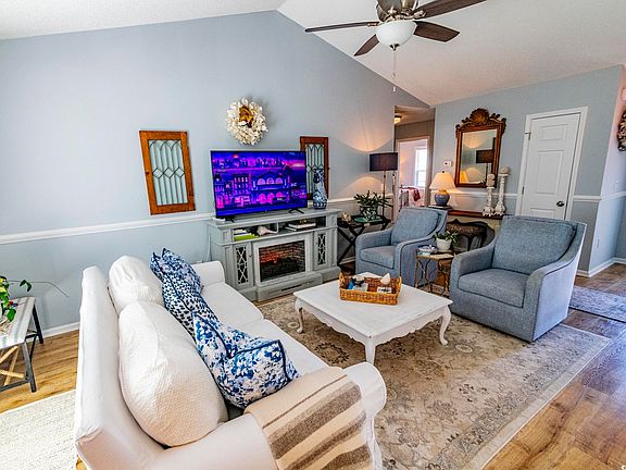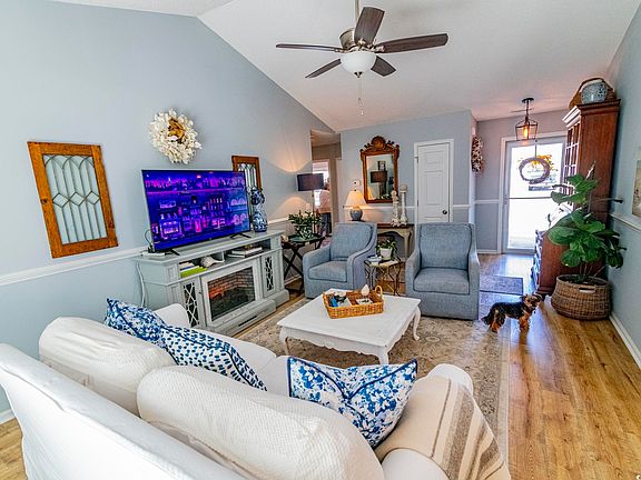 Looking for that perfect home near the beach and championship golf courses? This cozy Carolina Cottage which features 3 Bedrooms and 2 Full Baths is conveniently located in Little River with easy access to North Myrle Beach and Cherry Grove Beach. Upon entering you will be greeted with a bright airy Open Floor Plan that is ideal for comfortable living as well as entertaining. The home was updated with a new roof, new windows & doors. LVP Flooring, bathroom fixtures and fresh paint 4 years ago. Seller will provider Purchasers with a 1 year home warranty at closing. The Living Room is highlighted by a vaulted ceiling and an electric fireplace with bookshelves and doors. The Primary Bedroom has lots of natural light, a walk-in closet and an Ensuite Bath. In the secondary Bath you will find a walk-in shower. The secondary bedrooms get lots of natural light (the current owner using one for an art studio). You will find that this home has lots of storage including: a kitchen pantry and a coat closet. There is even lighted & floored storage above the garage which is accessible via pull-down stairs. The well lighted kitchen is complete with all appliances. Washer and Dryer are included. There is a large backyard with a privacy fence, a large concrete patio and even a Perennial Garden. The backyard is certainly large enough for a pool if you want. Ashton Acres is a well maintained, quiet, friendly neighborhood with low HOA fees which include garbage pick-up. This home is very convenient to schools, churches, the beach, shopping, dining, medical care/hospital, boating/marinas, pickleball courts and some of the best golf that The Grand Strand has to offer. Y'all come on down to Flip Flop Heaven where we have plenty of Vitamin Sea to go around.