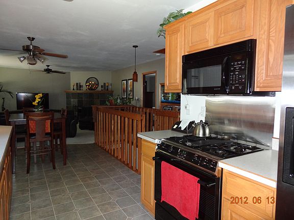 Originally a 3 bedroom home converted to a 2 bedroom with large master. Very open floor plan with kitchen, dining and living areas. Beautiful slate fronted wood burning fireplace in living area. Wonderful 3 season sun room 13x11 off of 2nd bedroom also adjacent to back yard patio. Kitchen has stainless steel appliances with new oak cabinetry, custom made movable island and pantry. The home has bay windows in both, the living room and the kitchen, 3 ceiling fans as well as central air conditioning. Sump pump installed in lower level then finished with recessed lighting, log bar, wood blinds, Stain Master carpeting and extra insulation. Recently installed white vinyl fencing around entire back yard and side of house, new roofs, gutters and downspouts, and all new lighting and doors throughout. Garage has additional room for storage or work room with plenty of windows. Very charming diamond in the rough!